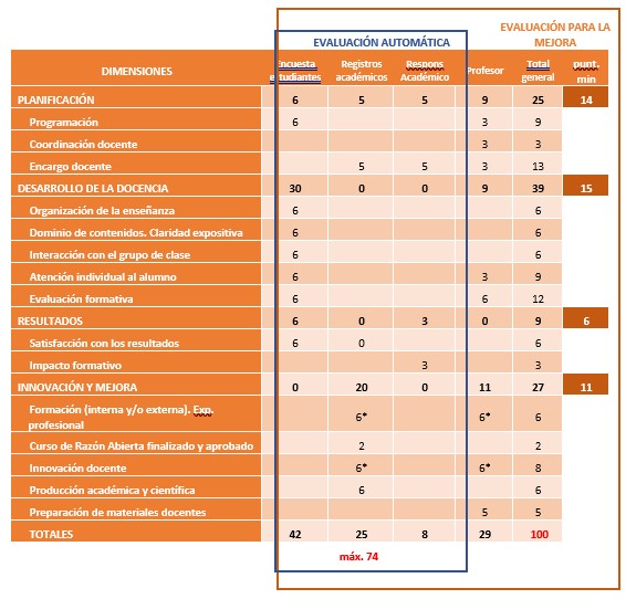 The model designed follows the requirements established by ANECA and the evaluation agencies of the autonomous communities in the DOCENTIA program, which have certified it.
